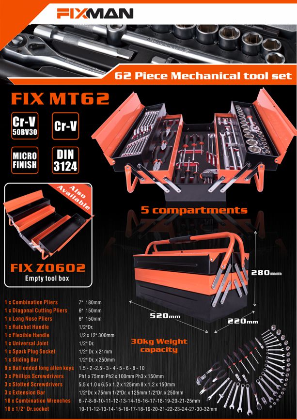 5 Compartment Mechanical Cantilever with 62PCS of tools
